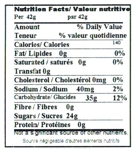 Glucose Syrup, Sugar, Modified Corn Starch, Corn Syrup, Glucose, Food Colours Malic Acid Gelatin, Titanium Dioxide Citric Acid, Sodium Citrate, Mineral Oil, Carnauba Wax, (Glazing Agents) Furmeric Acid, Tantaric Acid, Lactic Acid, Pectin, Artificial and Natural Flavours, Titanium, Colour (with Tartrazine) FD & C Yellow #5, Red 40m Blue 1, Blue 2, Yellow 5, Yellow 6