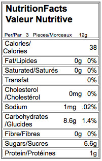 Corn Syrup, Sugar, Modified Starch, Gelatin, Citric Acid, Tartaric Acid, Fumeric Acid, Natural & Artificial Flavours, Colours (FD&C, Red#40, Yellow#5, Yellow#6, Blue #1).
